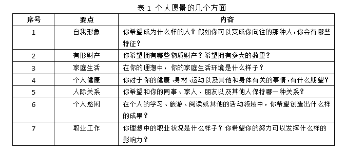 表2 個人愿景的具體描繪